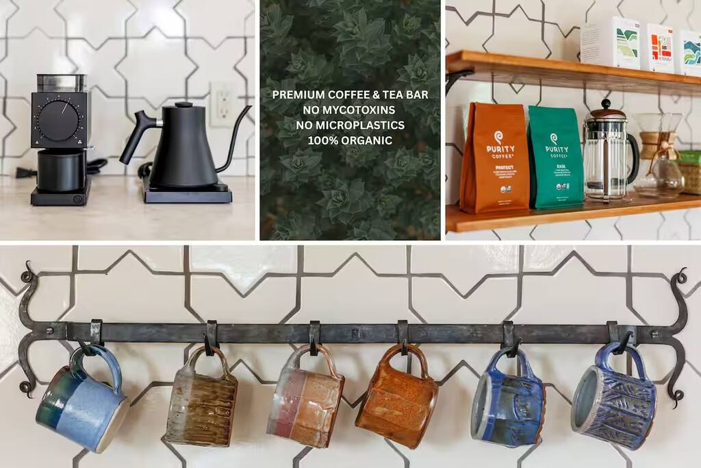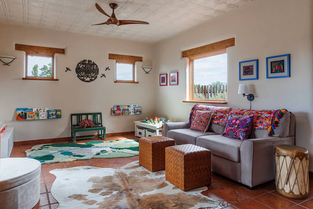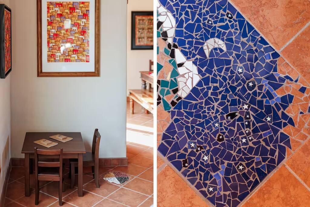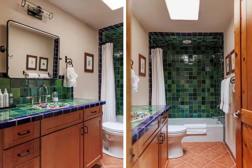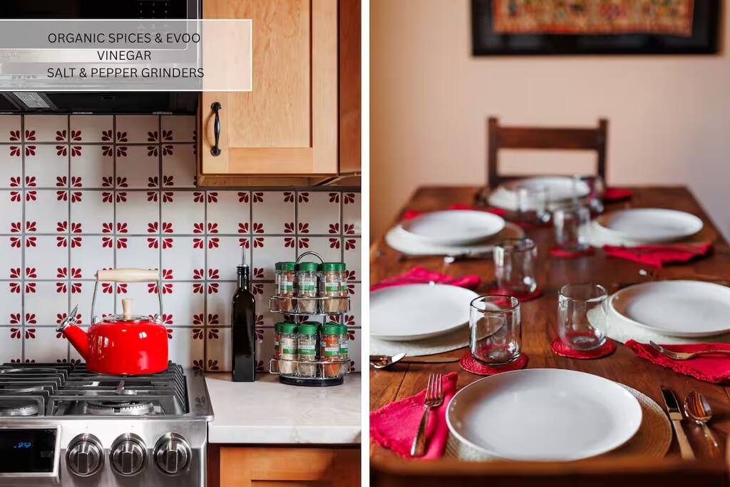 ⭐️KEY FEATURES⭐️ ▪︎ Fragrance-free home ▪︎ All-organic: beds, pillows, bedding, towels, toiletries, spices, coffee, and tea ▪︎ 4 bedrooms + nursery: 1 king, 1 California king, 1 twin-over-full bunk, 1 queen sleeper sofa, 1 mini crib — all Avocado organic mattresses with organic cotton bedding ▪︎ 3 full bathrooms: two en-suite with walk-in showers; one hall bath with shower/tub combo — luxury non-toxic toiletries provided ▪︎ Four fully furnished private patios, fire table, smokeless fire pit, hot tub, star-gazing deck, herb/veggie/fruit garden ▪︎ Full kitchen with stainless steel appliances and non-toxic cookware ▪︎ Kitchenette with premium organic coffee and tea bar ▪︎ Full playroom: child’s table and chairs, child’s eating utensils, high chair and booster seats, outdoor children’s picnic table ▪︎ Free Wi-Fi and three Smart TVs ▪︎ Kiva fireplace ▪︎ In-suite laundry room with washer, dryer, and non-toxic cleaning products ▪︎ Free on-site parking ⭐️OUTSIDE⭐️ Step outside and experience the magic of Miluna's high-desert setting. Meandering garden paths lead you through native landscaping, vibrant flower beds, and tucked-away seating areas perfect for morning coffee or sunset chats. The back patio offers stunning views of Taos Mountain, with an al-fresco dining area, fire table/soft seating area, and hot tub for starlit evenings. Whether you're soaking in the hot tub, sharing a grilled dinner, or watching the kids explore the gardens, every corner of the outdoor space invites you to slow down, connect, and savor the beauty of the Southwest. ⭐️BEDROOMS⭐️ Each bedroom is designed with authentic Southwestern furniture and decor, paired with premium Avocado organic mattresses and pillows, topped with 100% organic 400-thread count sheets and bedding for a truly restful sleep. Located in separate wings of the house, each room offers added privacy. Thoughtful touches like a full-length mirror, soft seating, dimmable lighting, and ample space to hang or fold clothes complete each serene retreat. Bedroom 1 - California king in the main master with en-suite bath, walk-in closet/nursery with mini crib and private patio. Bedroom 2 - twin over full bunk room with access to hall bath. Bedroom 3 - queen sleeper sofa in the attached casita with the playroom, kitchenette and private patio - pass through room to bedroom 4. Bedroom 4 - king in the casita master with en-suite bath and private screened-in porch. ⭐️BATHROOMS⭐️ 3 full bathrooms are adorned with handmade Mexican tile and hand-forged wrought iron hardware for an authentic luxurious experience. Each is stocked with plush 100% organic cotton towels, luxury non-toxic toiletries (including: shampoo, body wash, conditioner, body cream, leave-in conditioner, and hairspray), a salon-quality hairdryer, black make-up washcloths, and a light-up magnifying mirror for added comfort and ease. ⭐️KITCHEN | DINING | LIVING⭐️ This welcoming adobe haven boasts an open-concept layout rich in Southwest charm - featuring viga ceilings, a tiled nicho, stained glass, picture windows w/mountain views, and a traditional kiva fireplace. The main living area invites connection around the hearth, ideal for cozy reading or game nights, while a separate sitting area offers a Smart TV, record player, curated vinyl, travel books, and board games. The fully stocked kitchen includes an island with seating for 2 and flows seamlessly into a rustic dining space with seating for 7, plus a charming children's table for 2. Whether you're cooking, relaxing, or sharing stories, every corner is crafted for warmth, authenticity and togetherness. ⭐️CASITA | KITCHENETTE | PLAYROOM⭐️ The casita invites you into a thoughtfully designed space where comfort and creativity meet. The kitchenette is fully equipped with a premium organic coffee and tea bar with handmade ceramic mugs - making it a cozy spot for morning brew or afternoon tea. The adjoining lounge features an American Leather sleeper sofa, Smart TV and mountain views, with direct access to a private patio for fresh air and sunshine. Just beyond, a beautifully appointed playroom offers a world of imagination for little ones, featuring bins stocked with Magnatiles and Legos, themed books, play food, and a modular ottoman. It's a peaceful, joyful space designed to delight children and give caregivers a moment of ease. ⭐️🌙Your peaceful Taos escape awaits. Reserve your dates today - we look forward to hosting your stay at Miluna!⭐️🌙